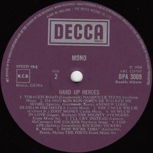 UK Decca DPA 3009/10. Scarce 1974 compilation 2-LP, features I'll Cry Instead (Lennon-McCartney) by Joe Cocker.