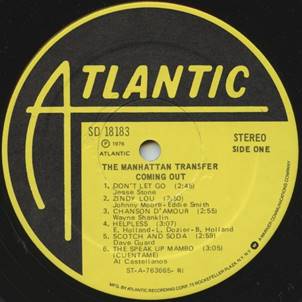 RLP26 COMING OUT (The Manhattan Transfer) USA Atlantic SD 18183 With Ringo Starr DISC = EX INNER = EX (Bottom seam split) SLEEVE = VG+ PRICE = 5,00