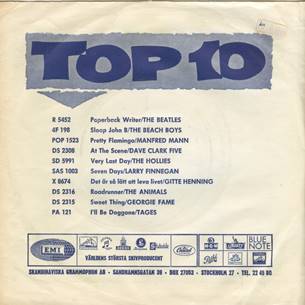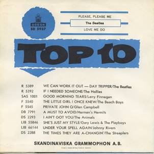 Sweden SweDisc SWES 1111 The Spotnicks first single with Jimmie Nicol was basically a straight reissue of Jimmie Nicols 1964 single, issued shortly after his stint with The Beatles.
