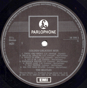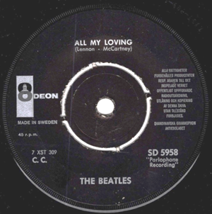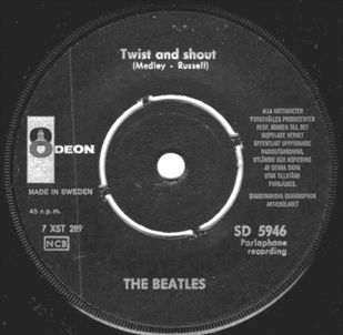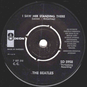 Sweden Parlophone R 5620 UK disc (first copies sold like this!).
