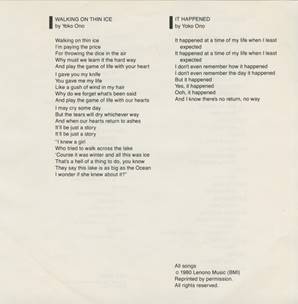 JSI222 WALKING ON THIN ICE / IT HAPPENED (Yoko Ono)